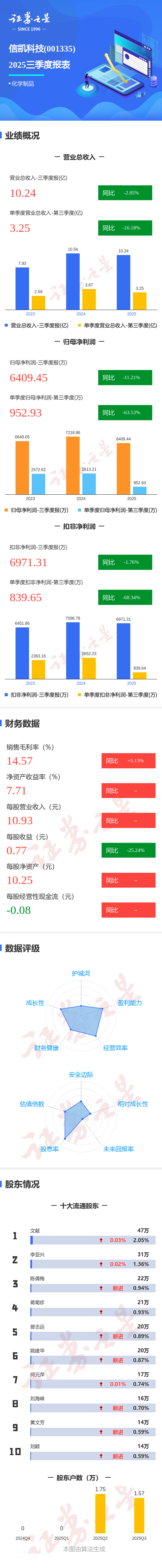 图解信凯科技三季报:第三季度单季净利润同比下降63.53%