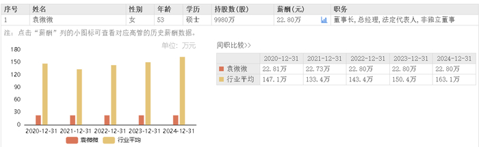 据东方财富网数据,智微智能董事长兼总经理袁微微2020-2024年分别领薪22.81万、22.73万、22.80万、22.80和22.80万,连续5年领薪22余万元。