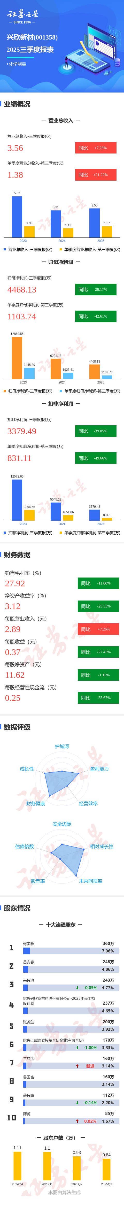 图解兴欣新材三季报:第三季度单季净利润同比下降42.62%