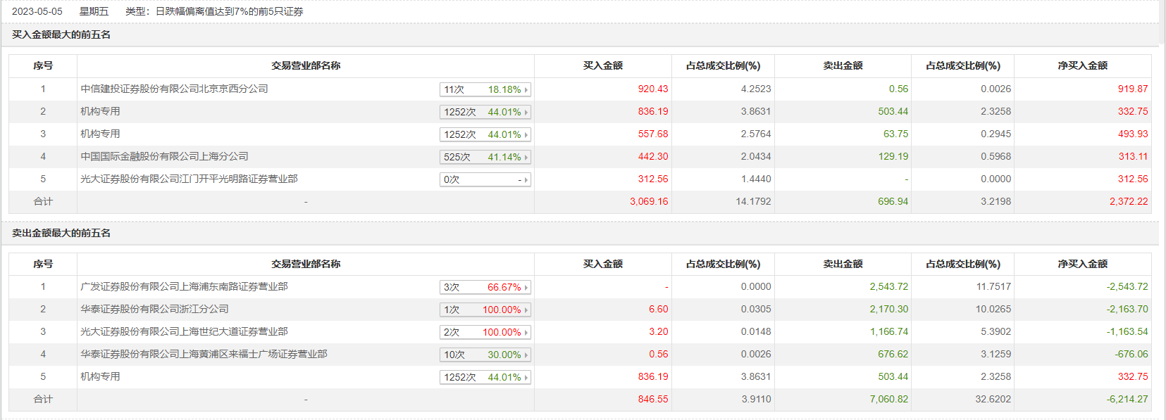 具体来看,机构买入1393.87万元,卖出567.19万元,合计净买入826.69万元。此外,广发证券上海浦东南路证券营业部、华泰证券浙江分公司分别卖出2543.72万元、2170.30万元;中信建投证券北京京西分公司、中国国际金融上海分公司分别买入920.43万元、442.30万元。