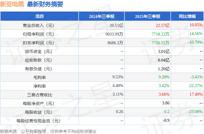 新亚电缆(001382)2025年三季报简析:增收不增利,公司应收账款体量较大