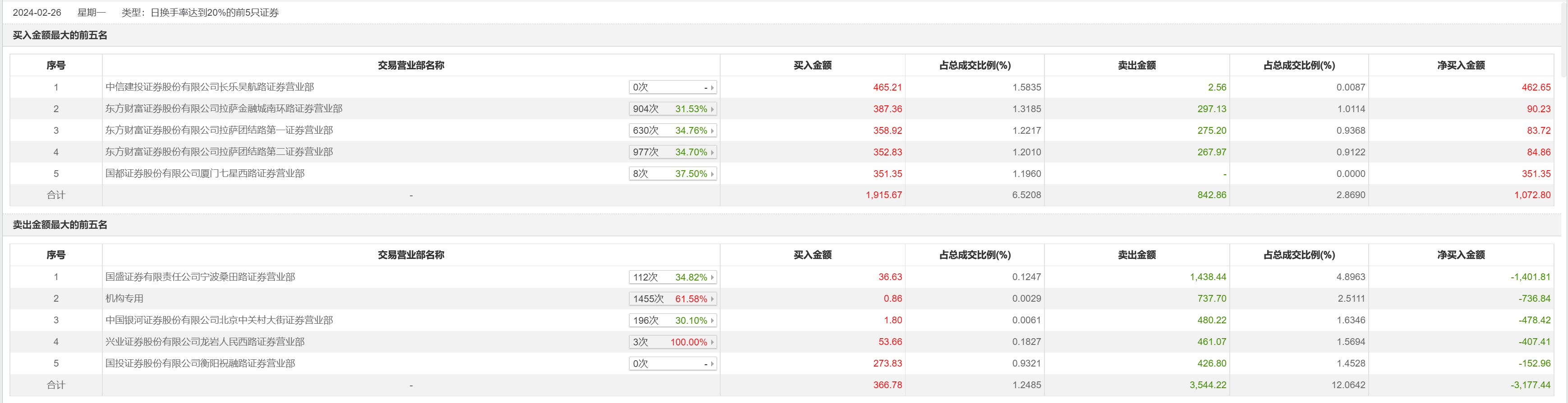 具体来看,机构买入8618元,卖出737.7万元,合计净卖出736.84万元。此外,知名游资现身龙虎榜,中信建投证券长乐吴航路证券营业部、东方财富证券拉萨金融城南环路证券营业部分别买入465.21万元、387.36万元;宁波桑田路(国盛证券宁波桑田路证券营业部)、中国银河证券北京中关村大街证券营业部分别卖出1438.44万元、480.22万元。