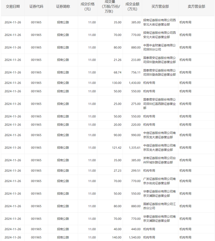 招商公路今日大宗交易折价成交1273.65万股,成交额1.4亿元