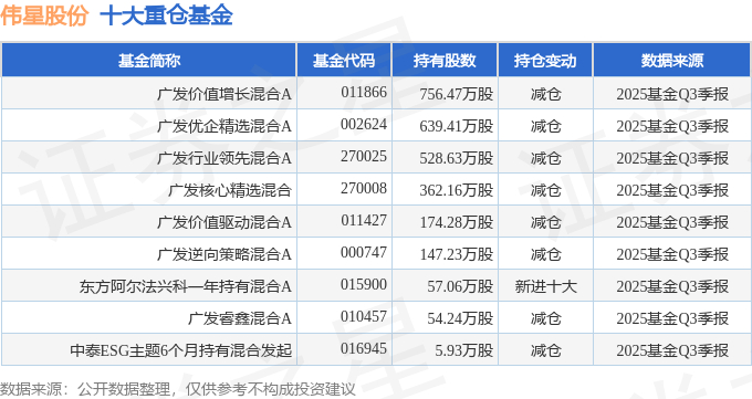 持有伟星股份最多的基金为广发价值增长混合A,目前规模为10.71亿元,最新净值1.0673(10月29日),较上一交易日上涨1.19%,近一年上涨16.42%。该基金现任基金经理为程琨。