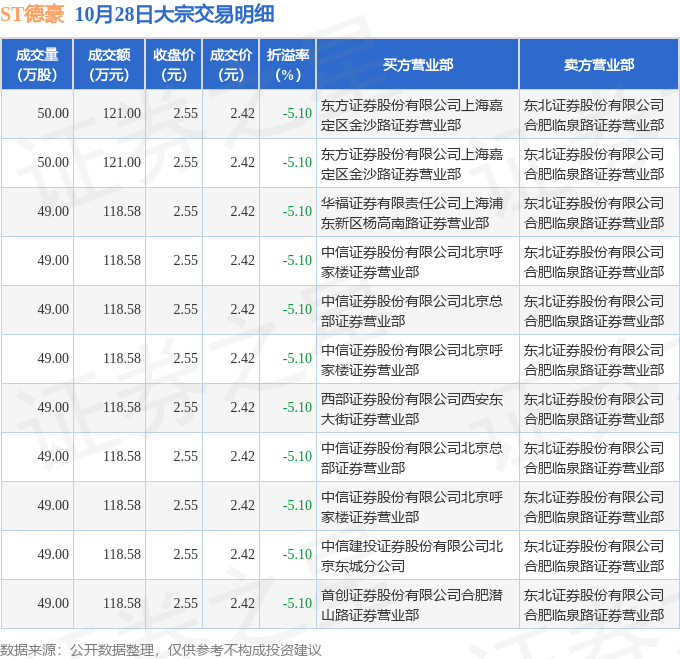 证券之星消息,10月28日ST德豪发生大宗交易,交易数据如下: