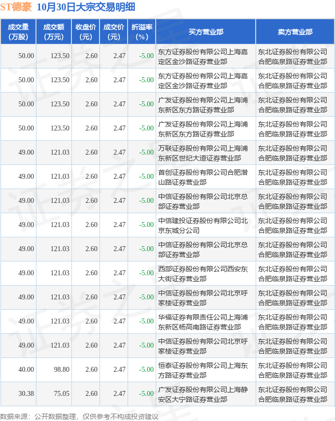 证券之星消息,10月30日ST德豪发生大宗交易,交易数据如下: