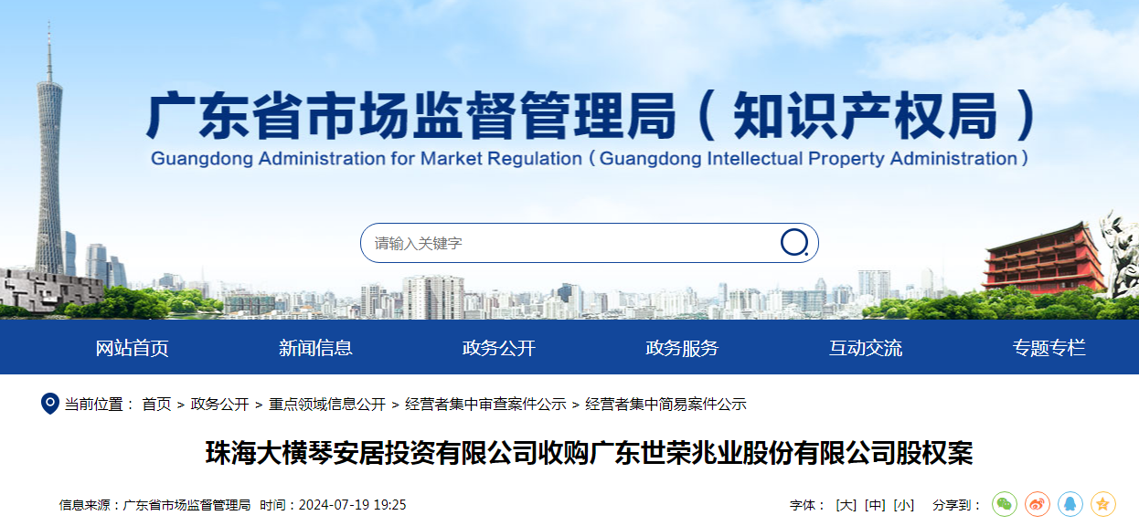 珠海大横琴安居投资有限公司收购广东世荣兆业股份有限公司股权案