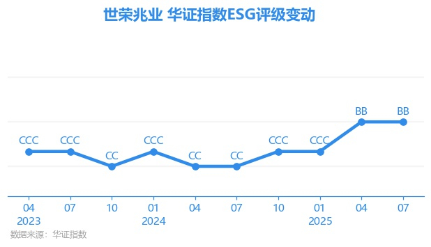 日前,华证指数公布了新一期(2025年7月31日)的ESG评级结果,世荣兆业(002016.SZ)获得BB评级(华证指数评级为C起至AAA九档,C为最低档,AAA为其最高一级评级/AA为其第二档),上一期(2025年4月30日)ESG评级为BB。本期ESG评级在102家房地产管理和开发行业A股上市公司中排名第32(上一期排名第39)。