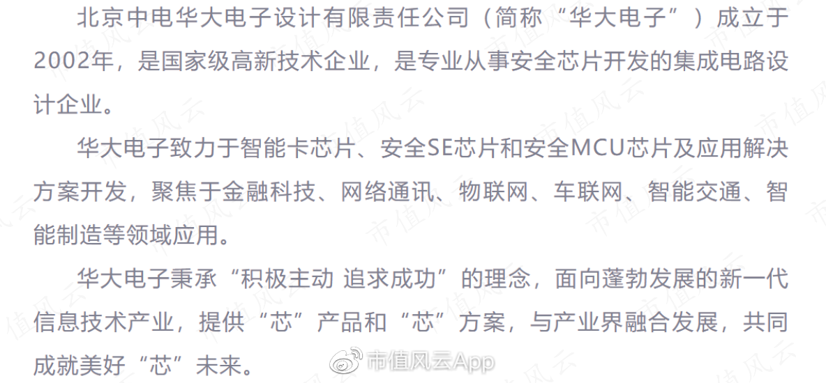 华大电子主要从事安全芯片开发,具体包括智能卡芯片、安全SE芯片和安全MCU芯片等。