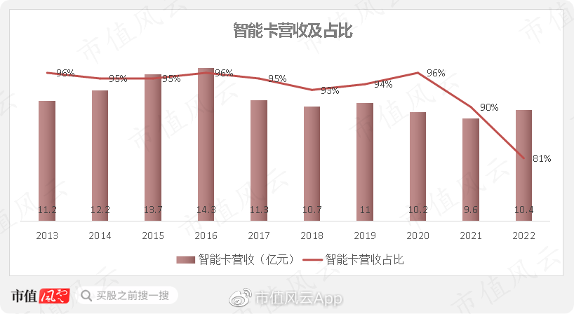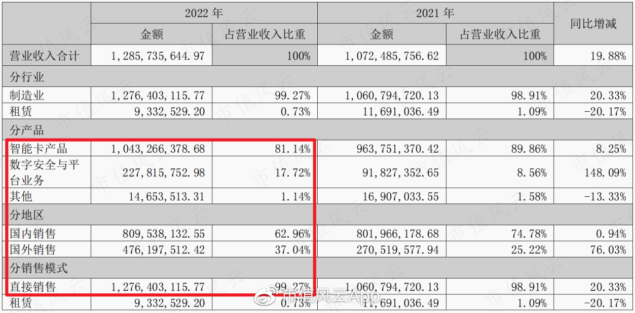 2022年营收为12.86亿元,主要来自智能卡产品,营收占比在80%以上,属于第一大业务。智能卡算是公司的核心产品。