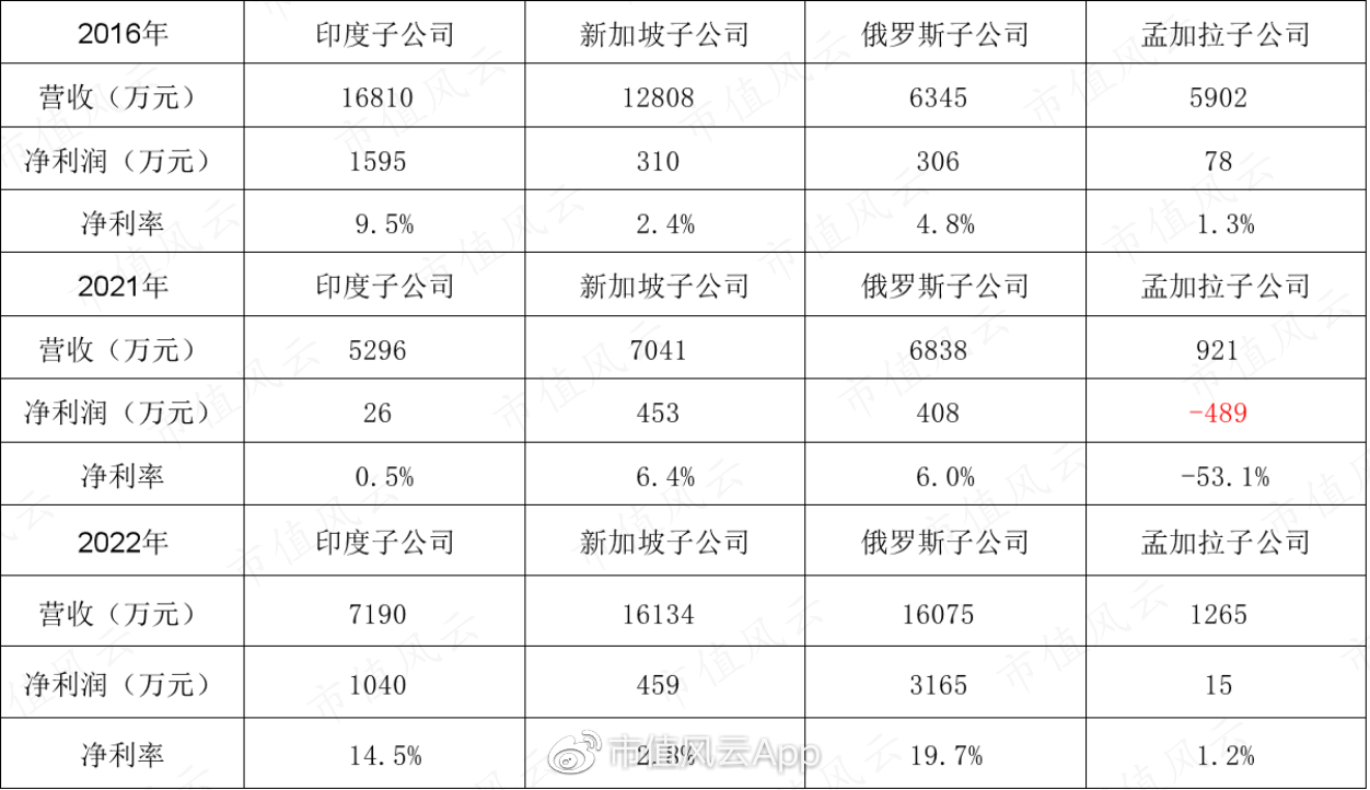 结合三家主要境外子公司的财务数据,相较于2021年,2022年的变化非常明显: