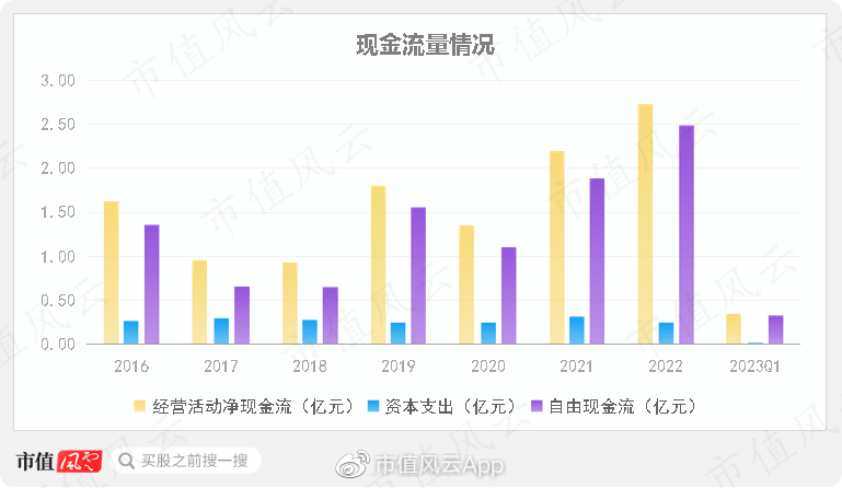 2016年以来,经营活动净现金流均为正,资本开支较小,自由现金流均为净流入。