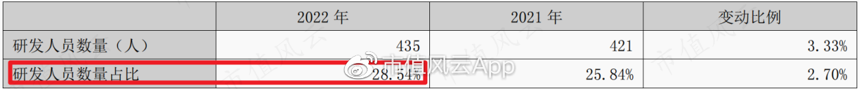 2022年,公司研发人员占比为28.5%。