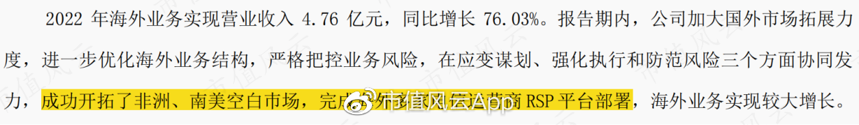 2022年,海外业务取得了较大突破,营收同比增长76%,达到4.76亿元,接近历史高点。按照公司的说法:2022年,公司成功开拓了非洲、南美空白市场。
