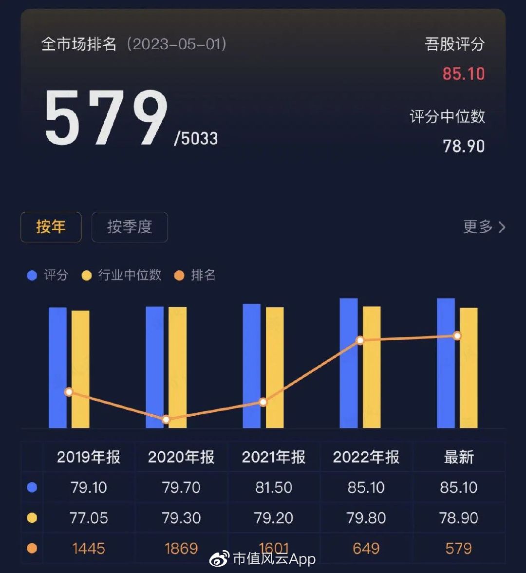 业绩改善,实时吾股排名同步提升。