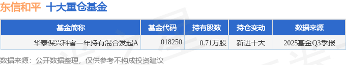 持有东信和平最多的基金为华泰保兴科睿一年持有混合发起A,目前规模为0.11亿元,最新净值0.9904(10月29日),较上一交易日上涨0.47%,近一年下跌0.57%。该基金现任基金经理为周咏梅 黄俊卿。