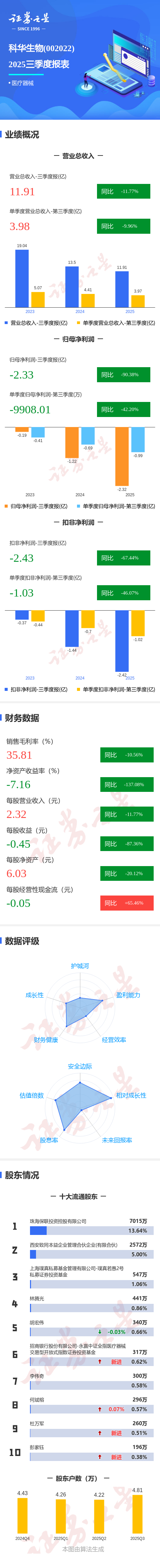 图解科华生物三季报:第三季度单季净利润同比下降42.20%