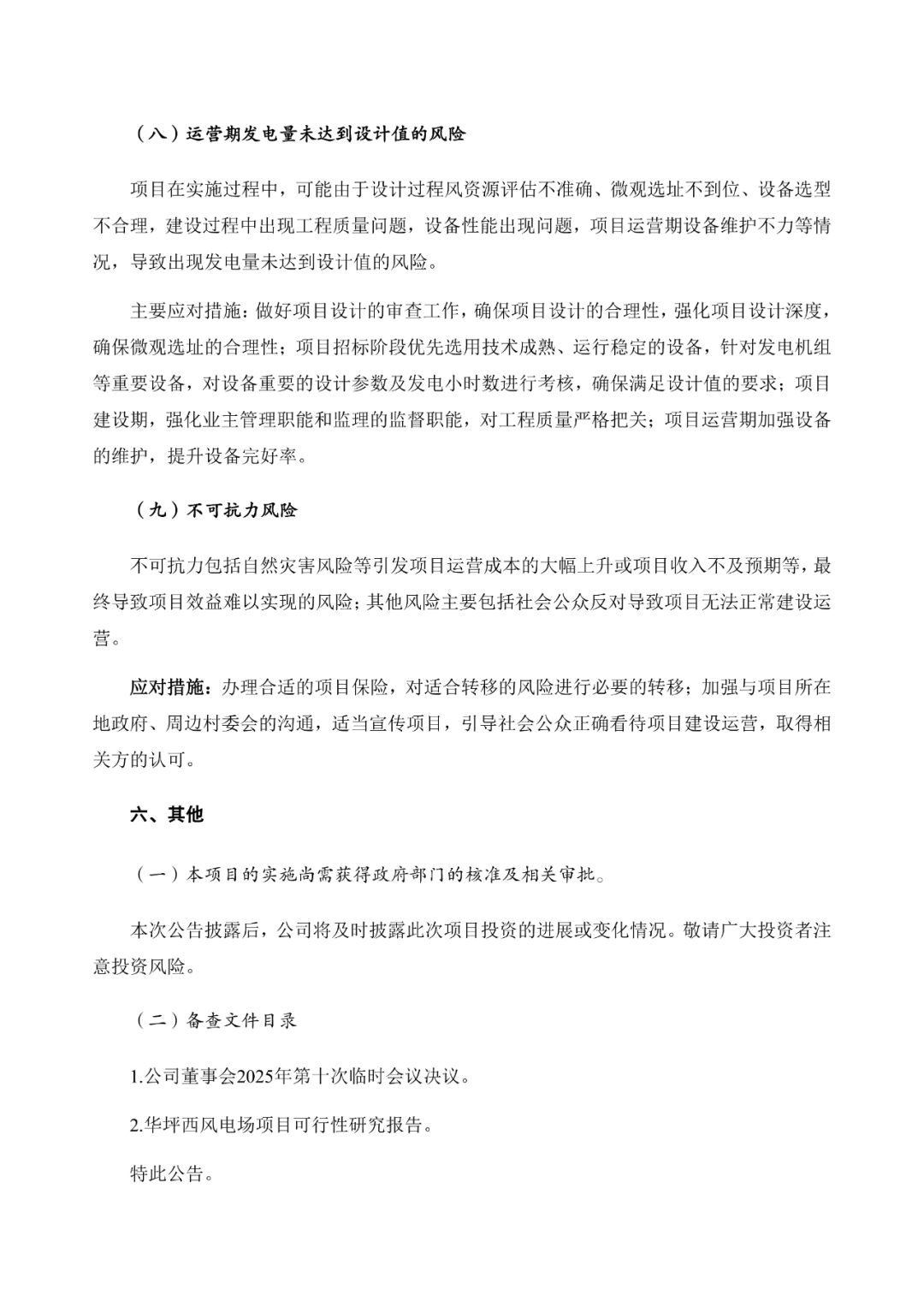 公告指出,按上网电价0.2763 元/kW·h(含税)测算,项目资本金财务内部收益率为8.01%。