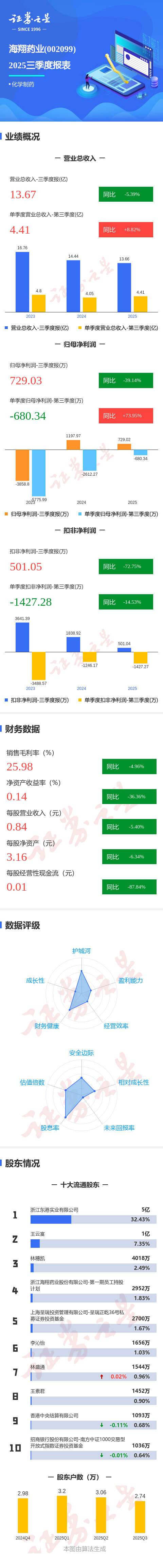 图解海翔药业三季报:第三季度单季净利润同比增长73.96%