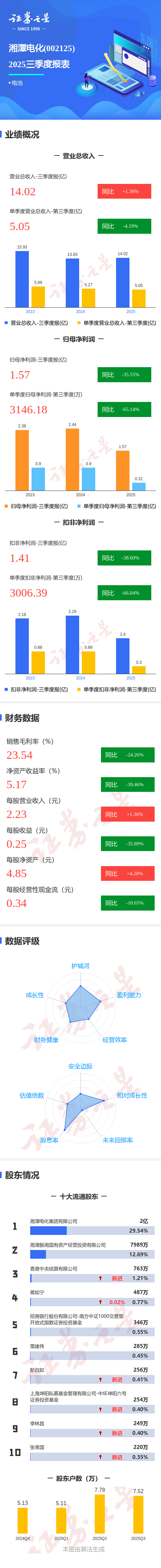 图解湘潭电化三季报:第三季度单季净利润同比下降65.14%