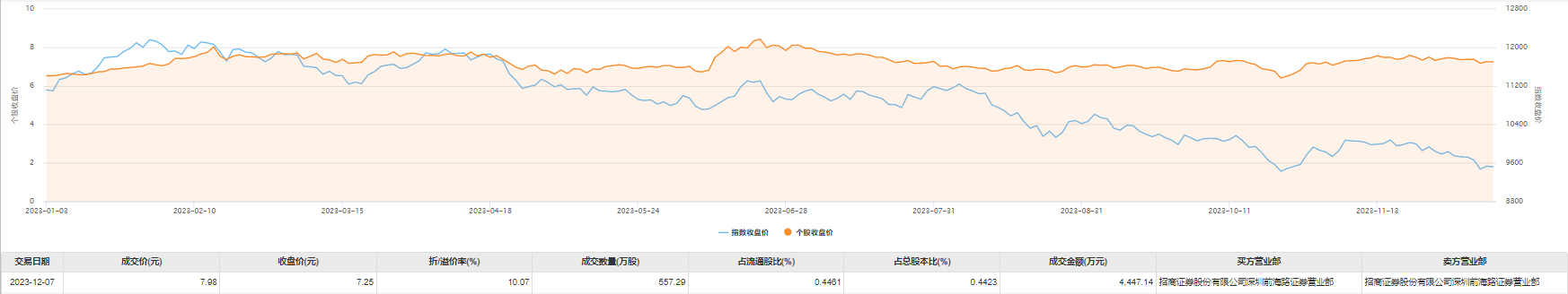 今日大宗交易成交557.29万股,成交额4447.14万元,占当日总成交额的36.1%,成交价7.98元,较市场收盘价溢价10.07%。