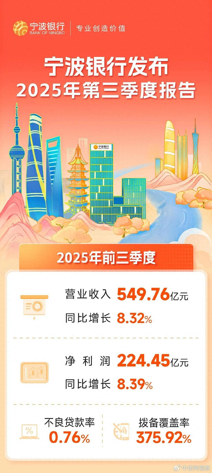 从财务数据来看,宁波银行2025年前三季度交出了一份稳健且具韧性的成绩单。