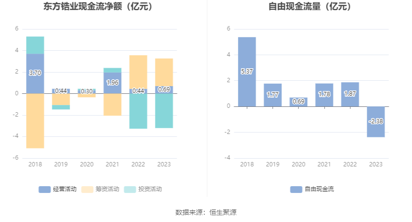 进一步统计发现,2023年公司自由现金流为-2.38亿元,上年同期为1.87亿元。
