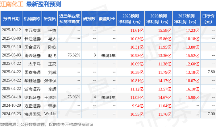 证券之星数据中心根据近三年发布的研报数据计算,甬兴证券赵飞研究员团队对该股研究较为深入,近三年预测准确度均值为76.32%,其预测2025年度归属净利润为盈利10.98亿,根据现价换算的预测PE为16.05。