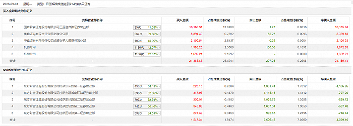 具体来看,机构买入3685.41万元,卖出150.36万元,合计净买入3535.04万元。此外,国泰君安证券三亚迎宾路证券营业部、华鑫证券上海分公司分别买入1.02亿元、5394.40万元;东方财富证券拉萨东环路第一证券营业部、东方财富证券拉萨金融城南环路证券营业部分别卖出1391.41万元、1145.13万元。