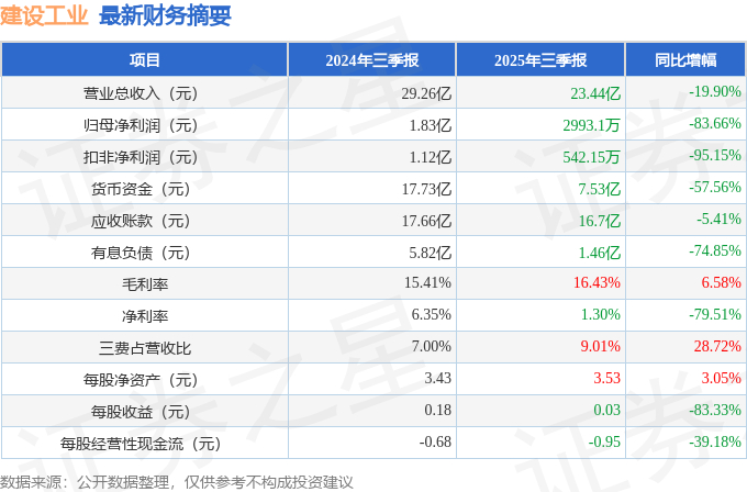 建设工业(002265)2025年三季报简析:净利润同比下降83.66%,公司应收账款体量较大