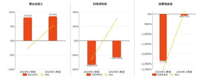 公司营业总收入为12.62亿元。归母净利润为-2165.64万元,在已披露的同业公司中排名第142。经营活动现金净流入为-695.52万元,在已披露的同业公司中排名第102。