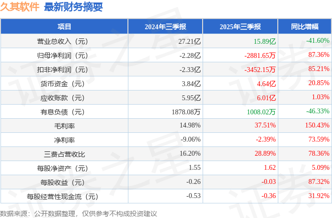 久其软件(002279)2025年三季报简析:亏损收窄,三费占比上升明显