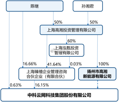 本次参与增发的高湘新能成立于2023年5月16日,仅是投资持股平台。高湘新能股东上海高湘持有公司控股股东上海臻禧41.6435%的财产份额,上海高湘持有上海臻禧的执行事务合伙人上海泓甄投资管理有限公司60%的股权。高湘新能是中科云网实际控制人陈继及其配偶孙湘君控制的企业。