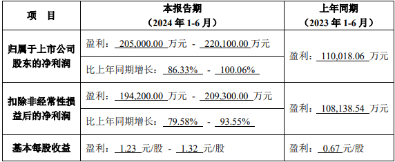 海大集团7月8日晚间披露2024年上半年业绩预告,报告期,公司实现归属于上市公司股东的净利润20.50亿元至22.01亿元,同比增长86.33%至100.06%。