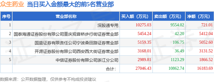 11月12日众生药业(002317)龙虎榜数据:游资宁波桑田路上榜