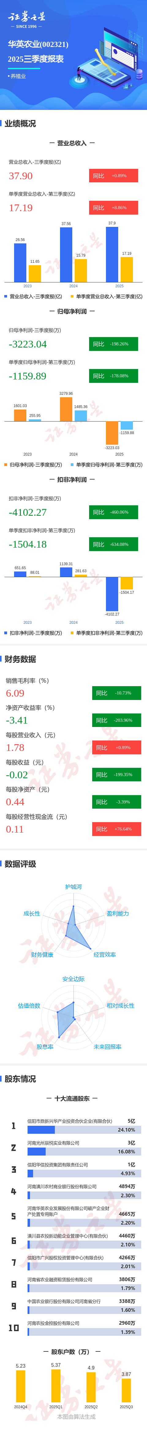 图解华英农业三季报:第三季度单季净利润同比下降178.09%