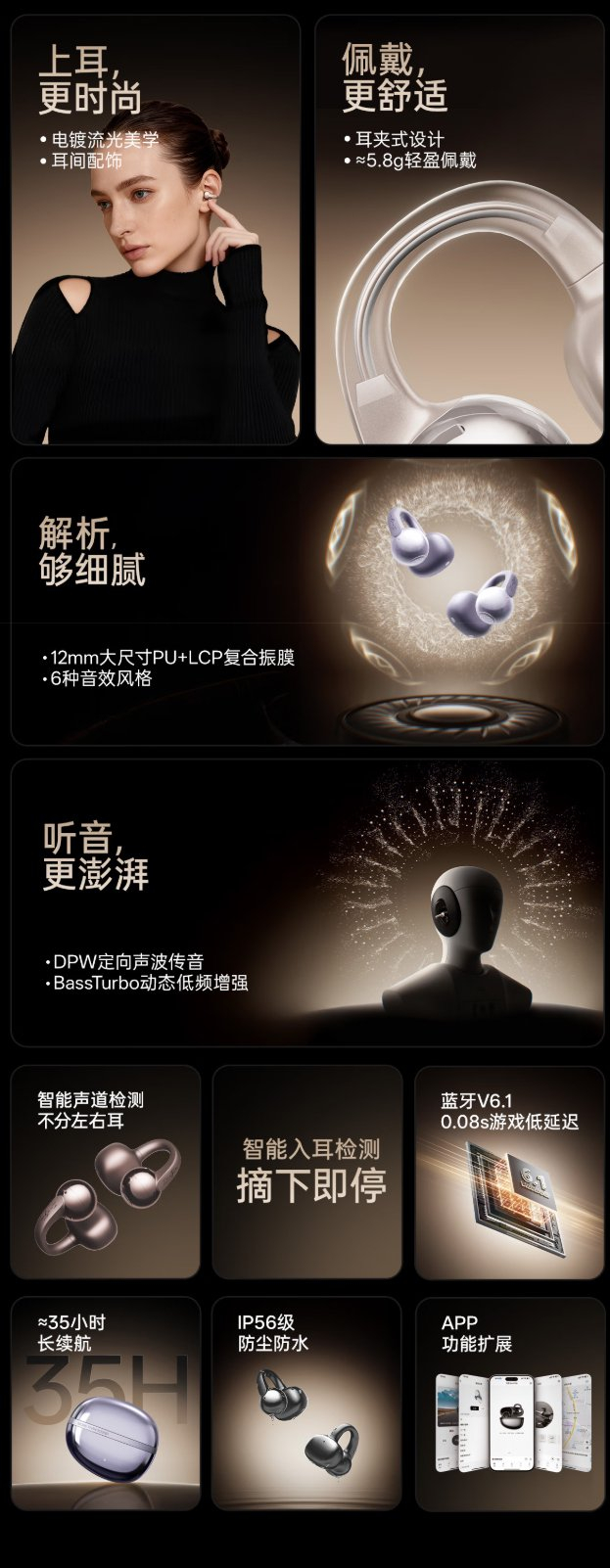 漫步者发布Auro Clip耳夹式耳机,5.8g超轻设计续航35小时