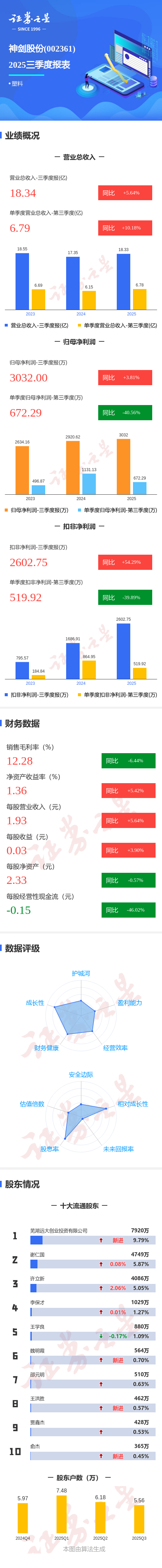 图解神剑股份三季报:第三季度单季净利润同比下降40.57%
