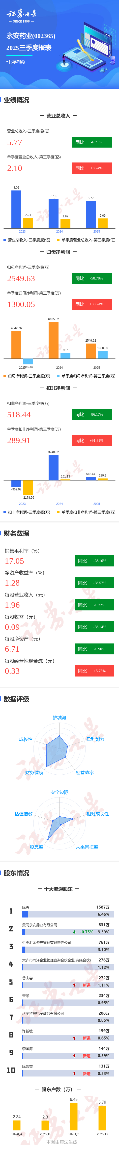 图解永安药业三季报:第三季度单季净利润同比增长38.75%