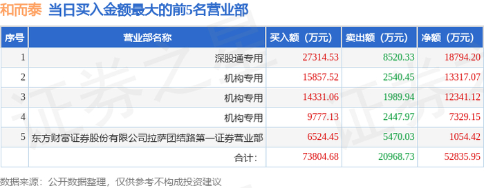 12月4日和而泰(002402)龙虎榜数据:机构净买入3.3亿元,北向资金净买入1.88亿元