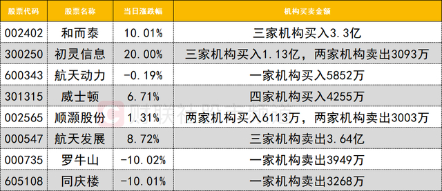 卖出方面,今日航天发展反复开板,遭三家机构卖出3.64亿。