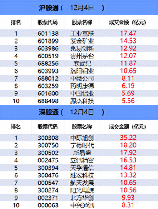 从沪股通前十大成交个股来看,工业富联位居首位;紫金矿业和兆易创新分居二、三位。