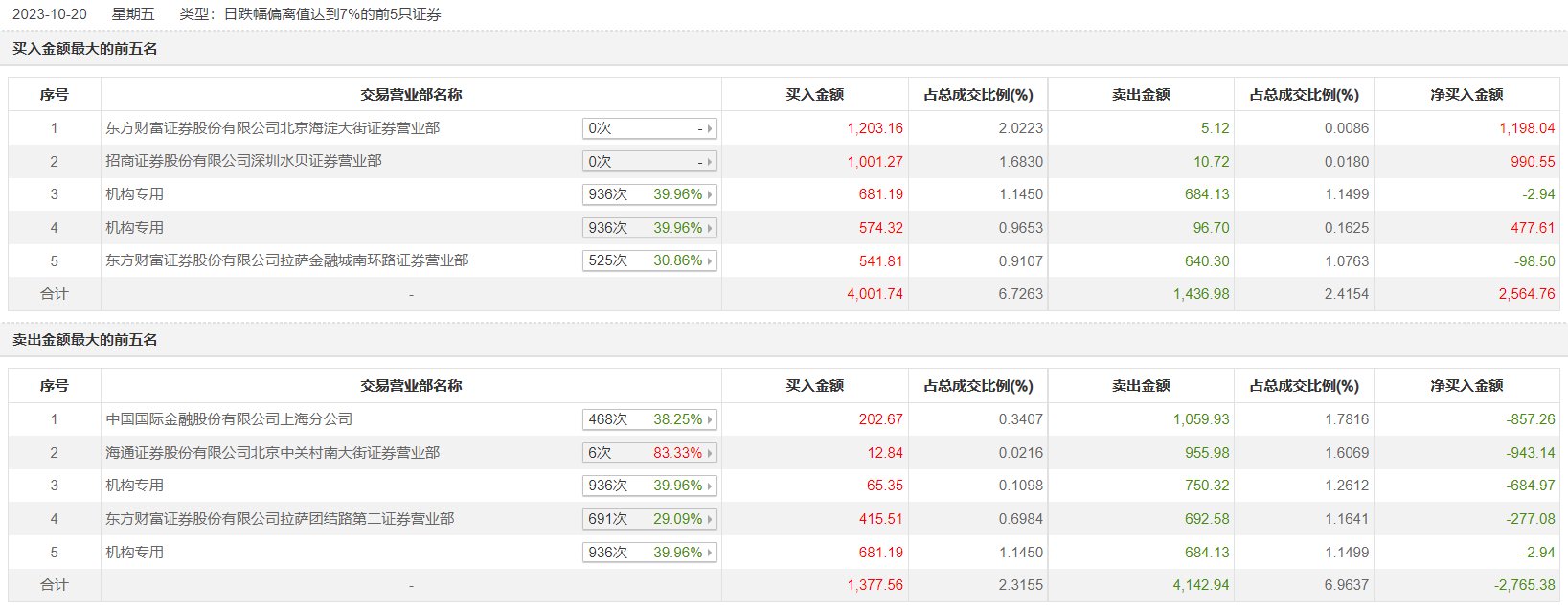 10月20日,远东传动今日跌停,全天换手率达17.28%,振幅达4.96%。龙虎榜数据显示,营业部席位合计净卖出197.68万元。