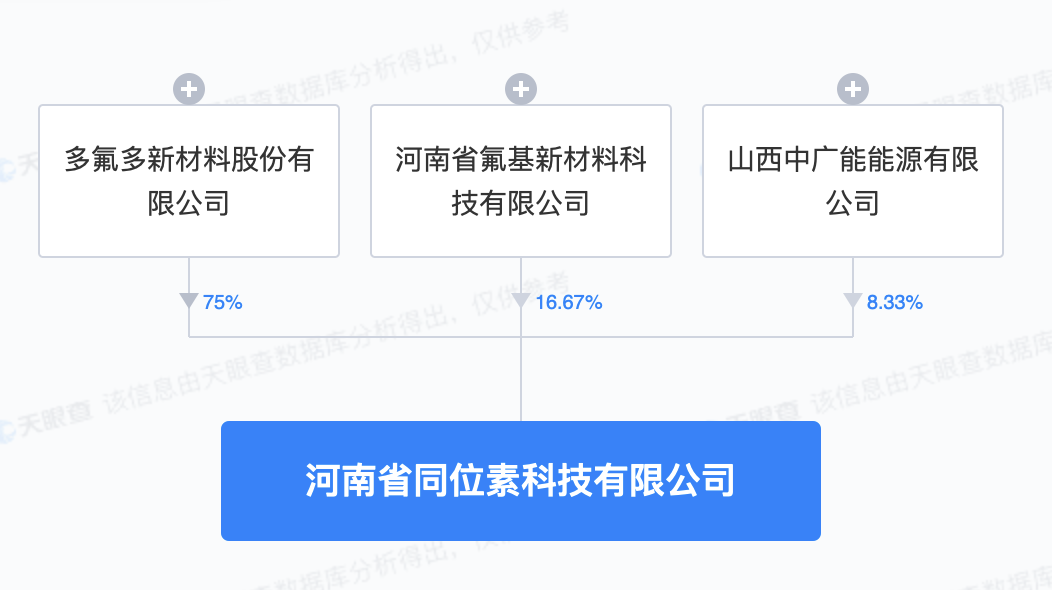 天眼查APP显示,近日,河南省同位素科技有限公司成立,法定代表人为薛旭金,注册资本6000万元,经营范围包含:新材料技术研发;基础化学原料制造等。天眼查股权穿透显示,该公司由