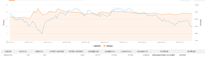 7月25日大宗交易成交317.77万股,成交额2389.63万元,占当日总成交额的20.08%,成交价7.52元,较市场收盘价7.52元持平。
