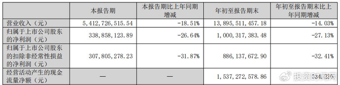 前三季业绩双降