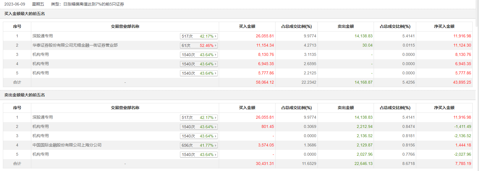 具体来看,机构买入2.17亿元,卖出6377.42万元,合计净买入1.53亿元。此外,深股通专用、华泰证券无锡金融一街证券营业部分别买入2.61亿元、1.12亿元;深股通专用、中国国际金融上海分公司分别卖出1.41亿元、2129.87万元。