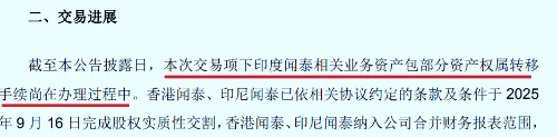 据立讯精密此前披露,资产包内绝大部分资产已于今年7—9月间完成股权交割,且已并入立讯精密的财务报表。截至目前,只有印度闻泰相关业务资产包部分资产权属转移手续仍在办理过程中。