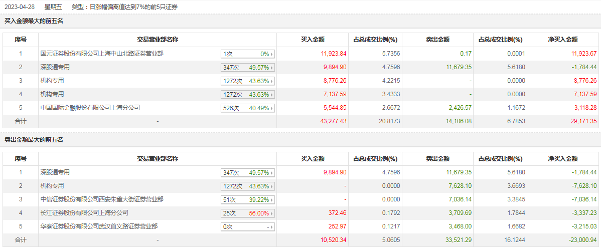 具体来看,机构买入1.59亿元,卖出7628.1万元,合计净买入8285.74万元。此外,知名游资现身龙虎榜,国元证券上海中山北路证券营业部、深股通专用分别买入1.19亿元、9894.90万元;深股通专用、方新侠(中信证券西安朱雀大街证券营业部)分别卖出1.17亿元、7036.14万元。
