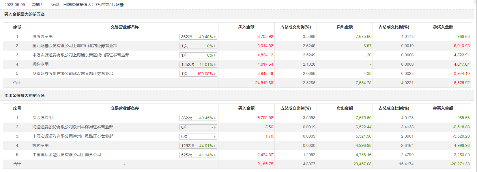 具体来看,机构买入4017.64万元,卖出4998.98万元,合计净卖出981.34万元。此外,深股通专用、海通证券泉州丰泽街证券营业部分别卖出7675.60万元、6522.44万元;深股通专用、国元证券上海中山北路证券营业部分别买入6705.92万元、5014.52万元。